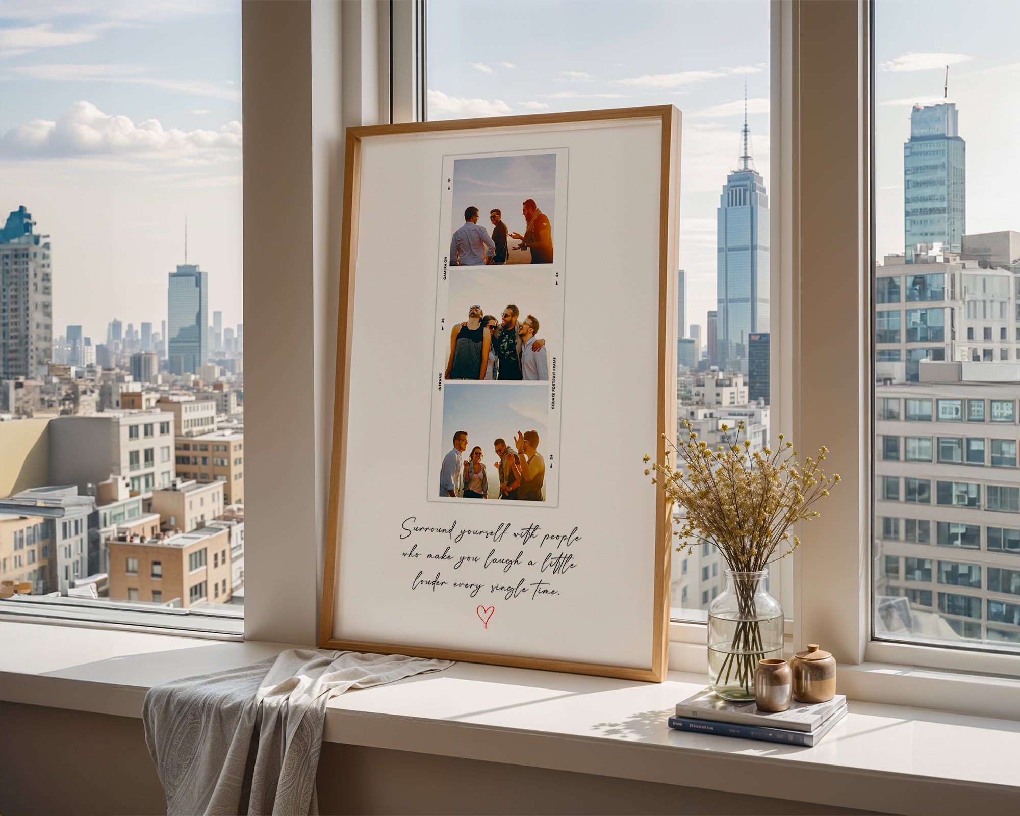 Create your own photo booth–style print with three favourite photos and a meaningful quote.